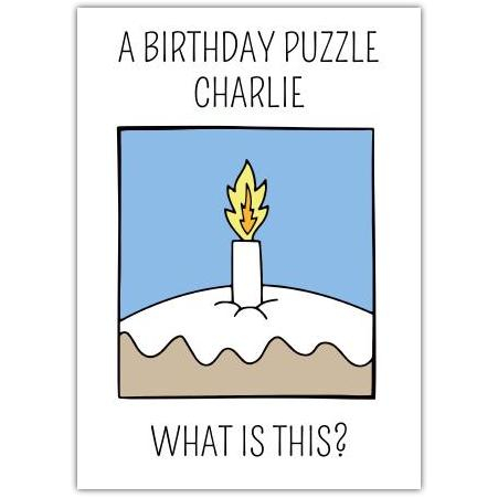 This witty Birthday Puzzle Rocket Card is perfect for anyone who loves a clever and playful birthday greeting. Featuring a quirky illustration of a candle disguised as a rocket on a cake, it invites the recipient to solve the fun little puzzle: “What is this?” – sparking smiles and laughter instantly.