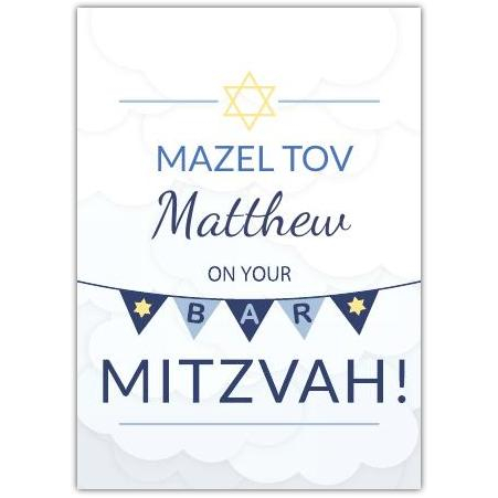 Celebrate a Special Milestone with Our Bar Mitzvah Banner Blue Greeting Card