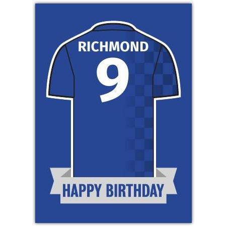 Celebrate a football fan’s big day with this striking Blue Happy Birthday Football Card. Featuring a bold, personalised football jersey design set against a vibrant blue background, this card is perfect for lovers of the beautiful game. The jersey displays a custom name and number, making it a unique and thoughtful choice for that special someone who lives and breathes football.