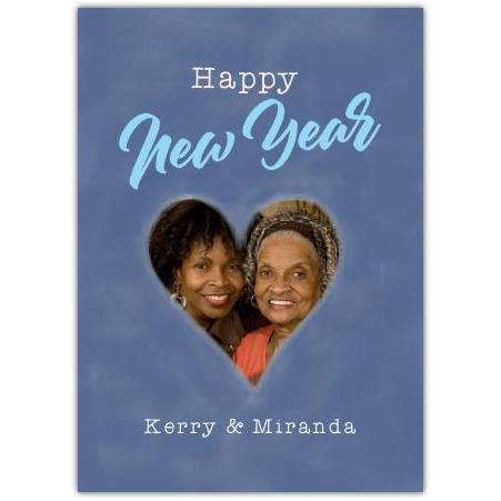 Celebrate new beginnings and cherished moments with this Happy New Year Heart Photo Greeting Card. Featuring a soft blue background and a delicate heart-shaped frame, this card is the perfect way to share your warm wishes for the year ahead. Add your own personalised photo to make it truly one-of-a-kind, and include a special message inside to brighten someone's New Year.