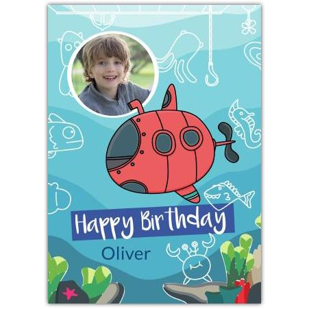 Personalised Boys Birthday Card with Red Submarine and Undersea Photo Upload