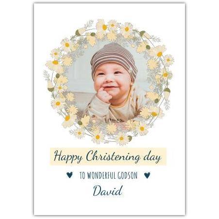 Send your warmest wishes on this beautiful day with a card that blends heartfelt sentiment and charming design. Whether for a godson or another cherished little one, this personalised Christening card will be a keepsake to remember.