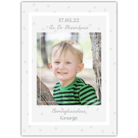 Personalised Christening or Baptism Card with Photo and Star Design in Irish Gaelic