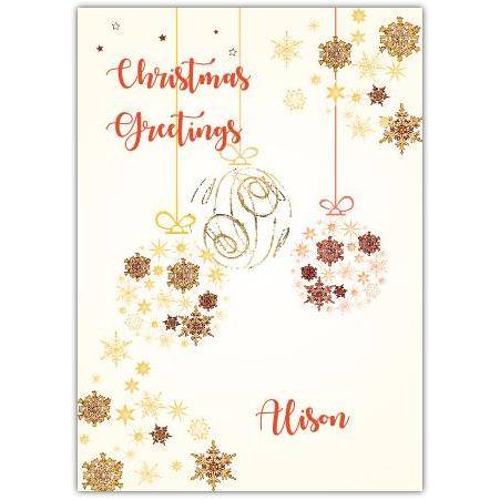 Personalised Christmas Greetings Card with Gold Bauble and Snowflake Design