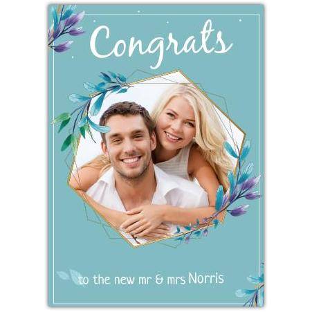 This charming Congrats To The New Mr & Mrs Hexagon Photo Card is the perfect way to send your heartfelt congratulations on a wedding day. Featuring a stylish green floral frame and a unique hexagon-shaped photo window, this card allows you to personalise the cover with your favourite photo of the happy couple, making your message truly special and memorable.