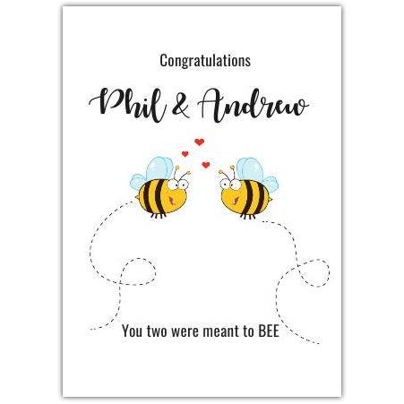 Send your warmest congratulations with a card that’s as sweet as honey. Whether for Phil & Andrew or personalised to any lovely couple, this card is the perfect way to share your joy and celebrate love.