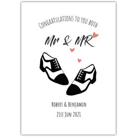 Personalised Congratulations Mr and Mr Wedding Card with Shoes and Hearts Design