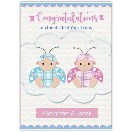 Celebrate the arrival of double joy with this delightful Congratulations on Twins card.
