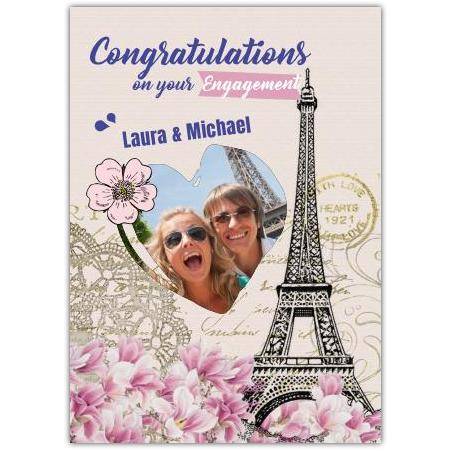 Personalised Congratulations on Your Engagement Card with Eiffel Tower and Photo Upload
