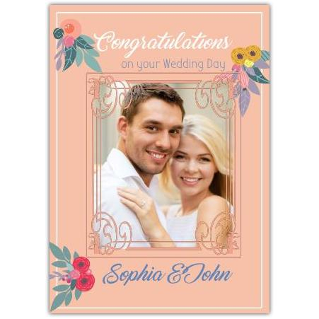 Personalised Congratulations Wedding Day Card with Floral Design and Photo Upload Option
