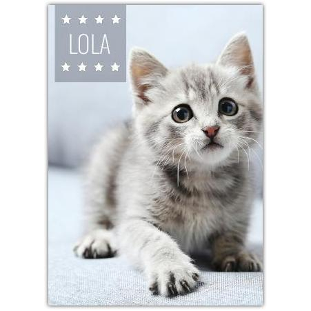 Celebrate your love for pets with this adorable personalised greeting card featuring a charming photo of a playful kitten. Perfect for animal lovers, this card allows you to add your pet’s name on the cover, making it a truly unique and heartwarming keepsake.