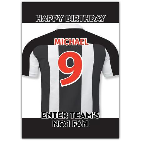 Celebrate your favourite football fan's special day with this striking Black and White No. 1 Fan Birthday Card. Featuring a bold football jersey design in classic black and white stripes, this card perfectly captures the spirit of the beautiful game.