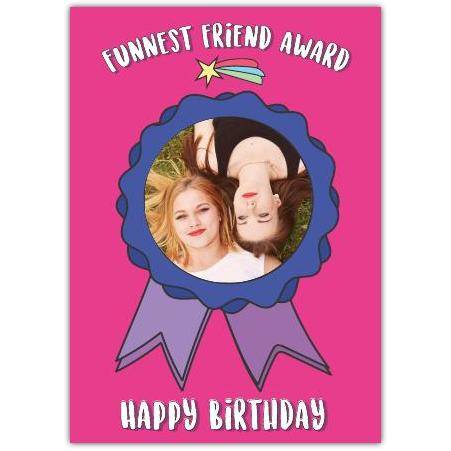 Personalised Funnest Friend Award Birthday Card with Photo Upload Pink Ribbon Design