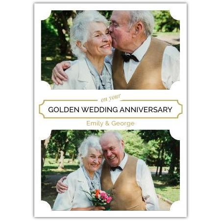 Personalised Golden Wedding Anniversary Card with Two Photos and Custom Names