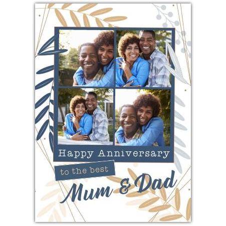 Happy Anniversary To The Best Mum & Dad – Blue Frame Photo Collage Card