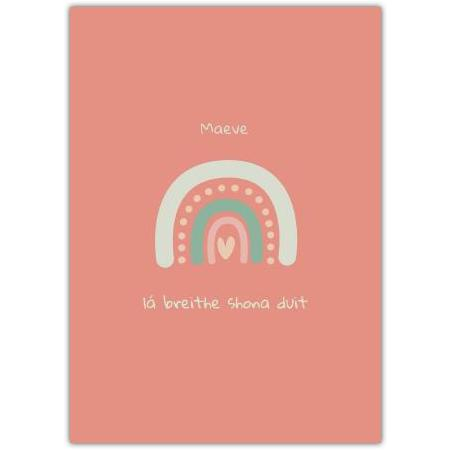 Personalised Happy Birthday As Gaeilge Card with Hand Drawn Rainbow Design