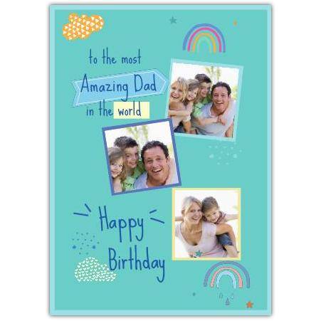 Brighten your dad’s birthday with this cheerful Happy Birthday Rainbows and Clouds Card, designed especially to honour the most amazing dad in the world. Featuring a playful hand-drawn style with colourful rainbows and fluffy clouds on a fresh green background, this card brings a joyful and personalised feel to your birthday wishes.