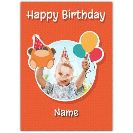 Personalised Happy Birthday Card with Gorilla and Balloons Photo Insert for Kids