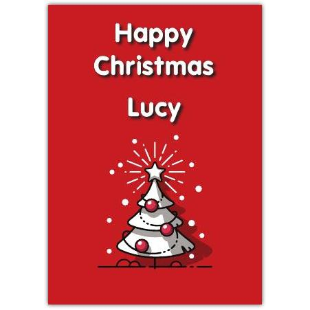 Personalised Happy Christmas Card with White Tree Red Background Design