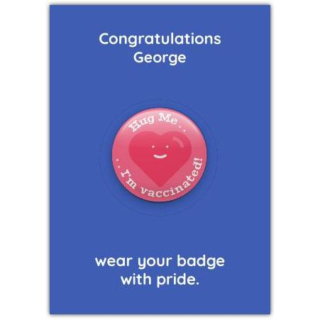 Celebrate the milestone of vaccination with this cheerful "Hug Me I'm Vaccinated" card.