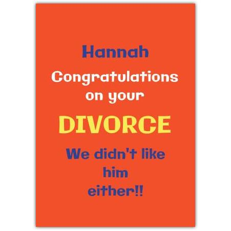 Celebrate fresh starts with a touch of humour! This bold and colourful card is the perfect way to congratulate someone on their divorce, especially if you want to bring a smile to their face during a new chapter in life. Featuring a bright orange background with fun, eye-catching typography, it’s a lighthearted way to share encouragement and solidarity.