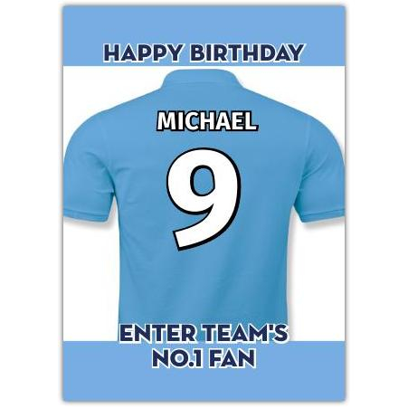 Celebrate the birthday of a true football enthusiast with this personalised No. 1 Fan card. Featuring a sky blue football jersey design complete with a team number and space to add the recipient’s name, this card makes an outstanding gift for any football lover—whether they support local clubs, leagues, or international teams.
