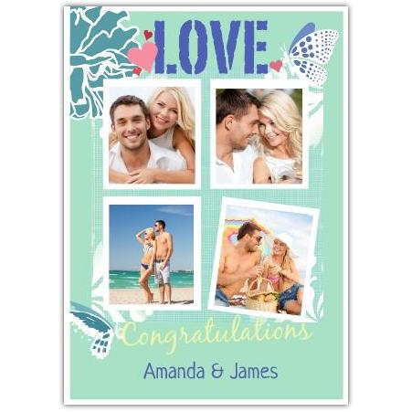 Personalised Love Congratulations Card with Four Photo Gallery and Butterfly Design