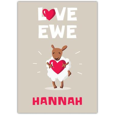 Personalised Love Ewe Cute Sheep Valentine or Romantic Greeting Card