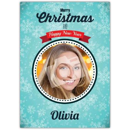 Personalised Merry Christmas and Happy New Year Photo Card with Snowflake Design