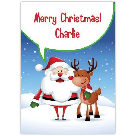 Personalised Merry Christmas Card with Santa and Reindeer Design