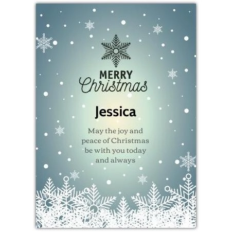 Send warm wishes this festive season with our beautifully designed Merry Christmas Joy And Peace Card. Featuring a serene blue background adorned with delicate white snowflakes and gentle falling snow, this card beautifully captures the magic and tranquillity of Christmas.
