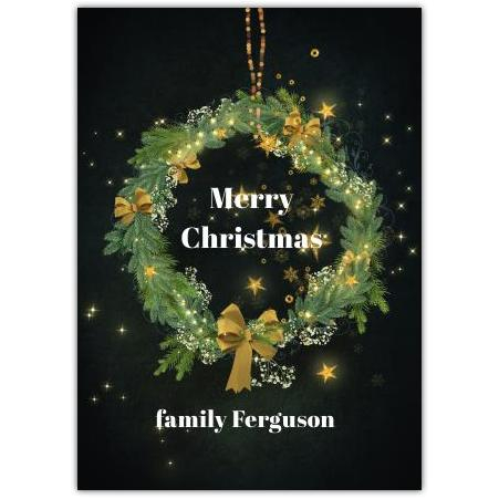 The classic design is set against a dark, rich background that makes the glowing wreath truly stand out, creating a charming and sophisticated holiday message. Perfect for brightening the mood of family, friends, or colleagues, this card can be personalised with your family name or a special message to add a unique, heartfelt touch.