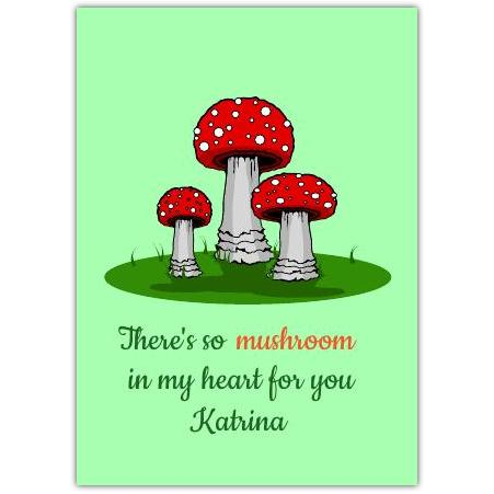 Brighten up someone’s day with this charming “Love Friend Mushroom Pun” Greeting Card. Featuring a delightful illustration of vibrant red and white mushrooms against a fresh green background, this card playfully declares, "There's so mushroom in my heart for you," making it a witty and heartwarming way to show your affection.