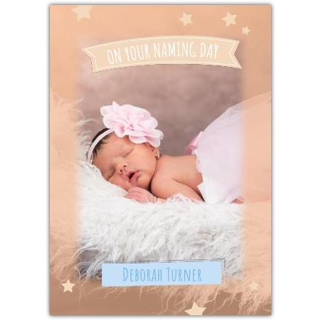 Celebrate the arrival of a precious baby girl with this charming personalised Naming Day card.