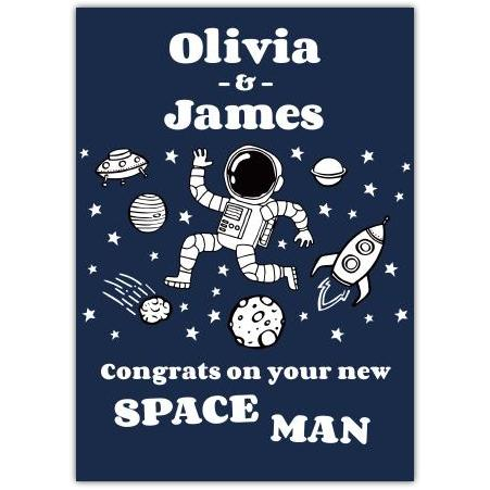 This playful and unique greeting card features a fun astronaut and space theme, making it perfect for congratulating someone on their exciting new home or “space”. Personalise the card with names to add a special touch that the recipient will truly appreciate.