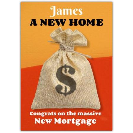 Welcome someone special into their new home with this charming and personalised greeting card. Featuring a rustic money bag design against a warm two-tone background, this card perfectly captures the excitement and pride of securing a new mortgage. The bold message, personalised with the recipient's name, makes it a memorable keepsake that recognises the milestone of home ownership.