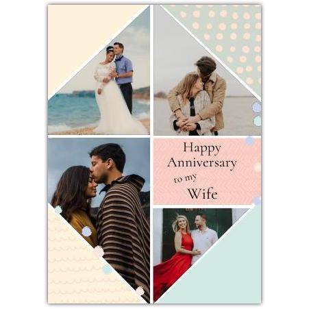 Personalised Patchwork Photo Anniversary Card for Wife with Hearts and Dots Design
