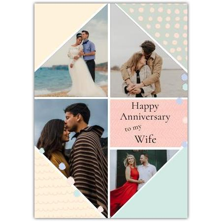 Celebrate your special bond with this charming Anniversary Photo Patchwork Greeting Card. This beautifully designed card features a colourful, patterned patchwork layout adorned with dots and hearts, creating a heartfelt and joyful backdrop for your treasured photos. Perfect for showcasing your favourite moments together, it offers space for up to four photos, making it a truly personalised keepsake.