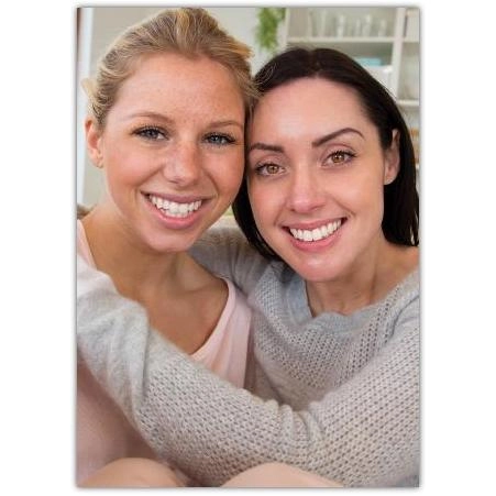 This charming greeting card features a warm and heartfelt photo of two friends sharing a joyful moment together. Perfect for celebrating friendship, this card is a beautiful way to let someone special know how much they mean to you.