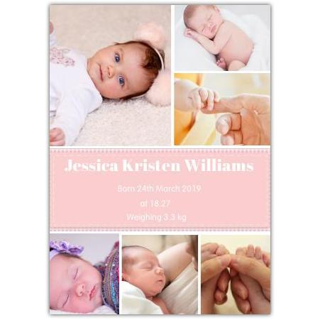 Personalised Pink Baby Girl Six Photos Newborn Announcement Card
