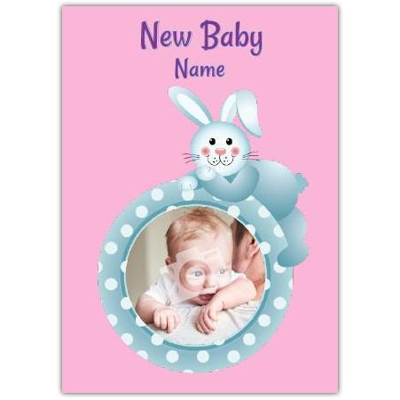 Personalised Pink Bunny New Baby Photo Card for Baby Announcement or Congratulations