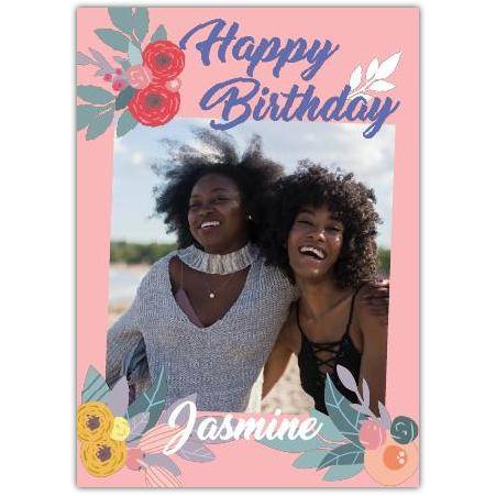 Personalised Pink Floral Photo Happy Birthday Card for Her