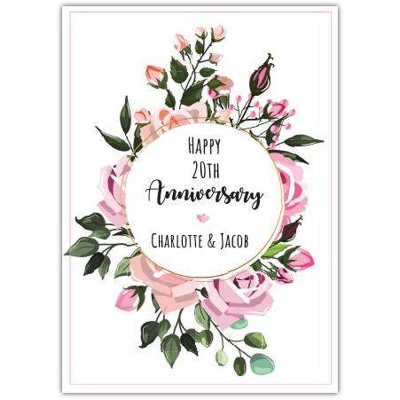 Featuring an elegant wreath of delicate pink roses and greenery encircling a heartfelt message, this card perfectly captures the romance of a special milestone. The soft floral design and personalised text options make it a wonderful keepsake for your loved one to cherish.