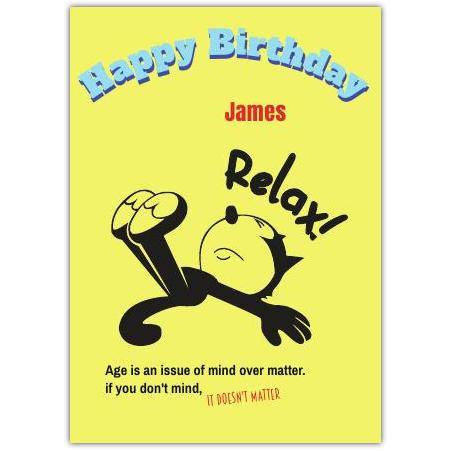 Featuring a charming cartoon cat lying back in total relaxation on a sunny yellow background, this cheerful card sends the perfect light-hearted message for anyone celebrating their special day.