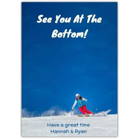With the charming phrase "See You At The Bottom!" boldly displayed, plus a personalised message you can add inside and on the cover, this card is sure to bring a smile and inspire excitement. Whether it’s for a birthday, special occasion, or just because, it’s the perfect way to share your good wishes and keep the thrill of skiing alive.