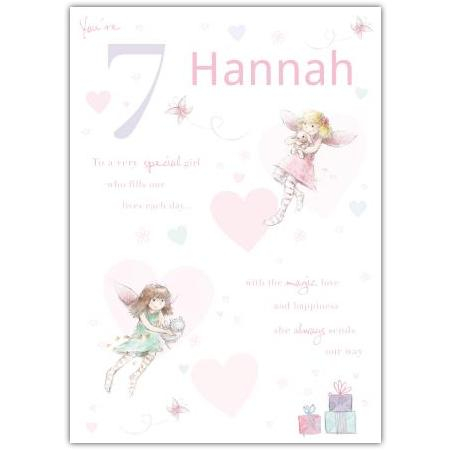Celebrate a magical 7th birthday with this enchanting fairy-themed card, perfect for a special girl who loves whimsy and wonder. Featuring delicate illustrations of two charming fairies surrounded by soft pastel hearts and playful sparkles, this card brings a sense of joy and fantasy to the occasion.