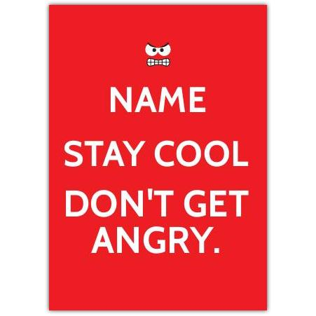 Stay Cool, Don't Get Angry – a bold and playful greeting card designed to bring a smile and a little light-hearted advice to someone special.