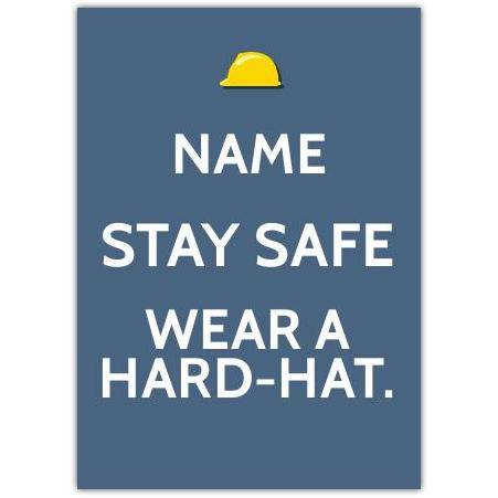 Personalised Stay Safe Wear A Hard-hat Construction Safety Greeting Card