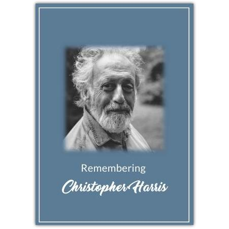 Express your heartfelt condolences with this elegant sympathy card, featuring a soothing grey background and a softly blurred frame that gently highlights a personalised photo. Perfect for commemorating the memory of a loved one, this card offers a quiet and respectful way to say “Thinking of you” during difficult times.