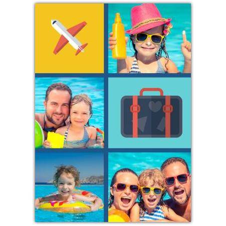 Personalised Travel Holiday Card with Four Photos Suitcase and Plane Design
